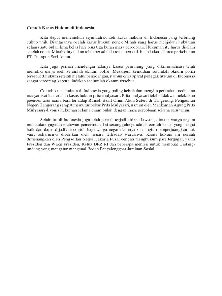 Download file format.doc atau.docx microsoft word dan pdf. Berikut 10 kasus yang menggoncang hukum indonesia: Pertama, vw adalah perusahaan besar, megah, dan terhormat, bukan perusahaan kemarin sore.