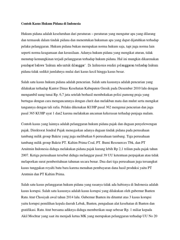 Contoh Kasus Hukum Pidana Di Indonesia Cara Mengajarku