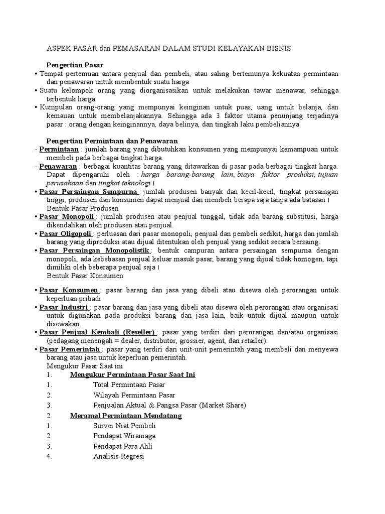 40 tahun 2007 tentang perseroan terbatas. Bab ii aspek pasar dan pemasaran bentuk pasaruntuk memasarkan produk kami, maka telah ditentukan tujan pasar mana yang akan kami masuki, dalam hal ini ada 2 bentuk pasar, yaitu: Aspek pemasaran dalam pengelolaan usaha sama halnya dengan aspek pemasaran dalam studi kelayakan bisnis yang dirancang dan diperhatikan sebelum kita memulai usaha.