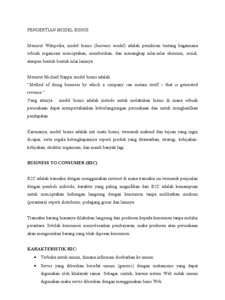 Ini meliputi cara anda mendapatkan dagangan, pengelolaannya, dan pengiriman kepada pelanggan. Model bisnis yang bagus adalah salah satu faktor utama dalam keberhasilan bisnis. B2g ( business to government ) , juga disebut b2a ( business to administration ) , adalah model bisnis yang merujuk pada bisnis yang menjual produk, layanan, atau informasi.