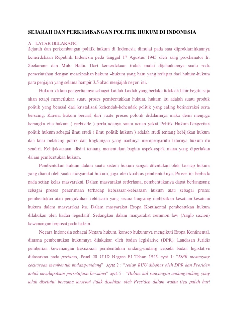 Sejarah Dan Perkembangan Politik Hukum Di Indonesia